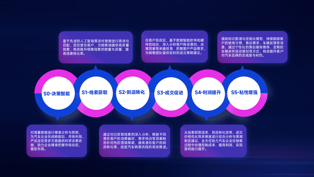 通过拓宽潜在客户来源、、、、优化线索分配并提高到店转化率,,,,以增强销售效率。。同时,,利用线索数据不断优化分析模型,,,,有效提升转化率,,扩大营销影响力。。